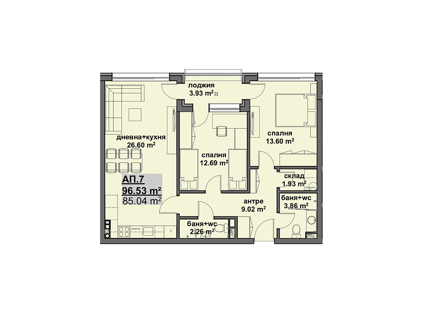 В комплексе представлены квартиры различных форматов: Компактные студии; Уютные однокомнатные; Просторные двухкомнатные квартиры. Площади — от 46 м². Каждая планировка — с возможностью индивидуального дизайна.